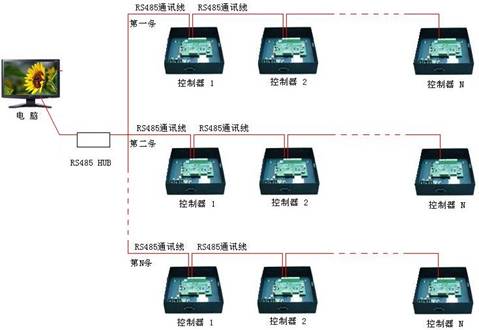 1、單條總線上掛接的控制器數量一般不能超過40臺;超過40臺控制器的話,建議采用多條總線制,再通過485HUB連上管理電腦。