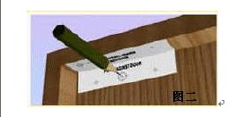 | 第二步:拿出安裝紙板,將紙板沿著虛線折疊按(圖二)所示方法把紙板放到所需裝鎖的位置,然后把需要打孔的地方做上記號后打孔. |