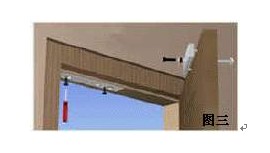 B.邊板的固定(參見圖三)把邊板用兩個半圓頭螺絲固定在先前打孔的門框上(固定在邊板的長形孔中)。注意:不要將邊板鎖緊,讓其能前后能移動以利于安位置的修正。