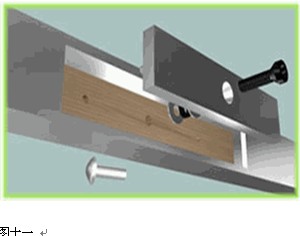 A.內襯木塊法(請參考圖十、圖十一):在門框里放入一塊大小合適的木頭作襯,再鎖螺絲。此種方法取材方便,安裝簡單。在實際安裝中大多采用這種方法。 |