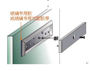| 2.利用AB架來安裝 先把AB架用玻璃專用膠(或雙面膠帶)固定在玻璃門上,然后再把繼鐵板固定在支架上。 |
